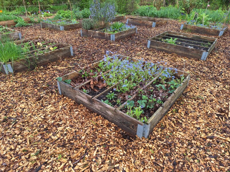 Naast de dierenweide liggen de kindertuintjes. Dat zijn houten bakken met houtsnippers eromheen. Hier leren kinderen (samen met hun ouders) tuinieren. Ze kweken er bloemen, kruiden of groenten en kunnen er elke dag aan de slag.